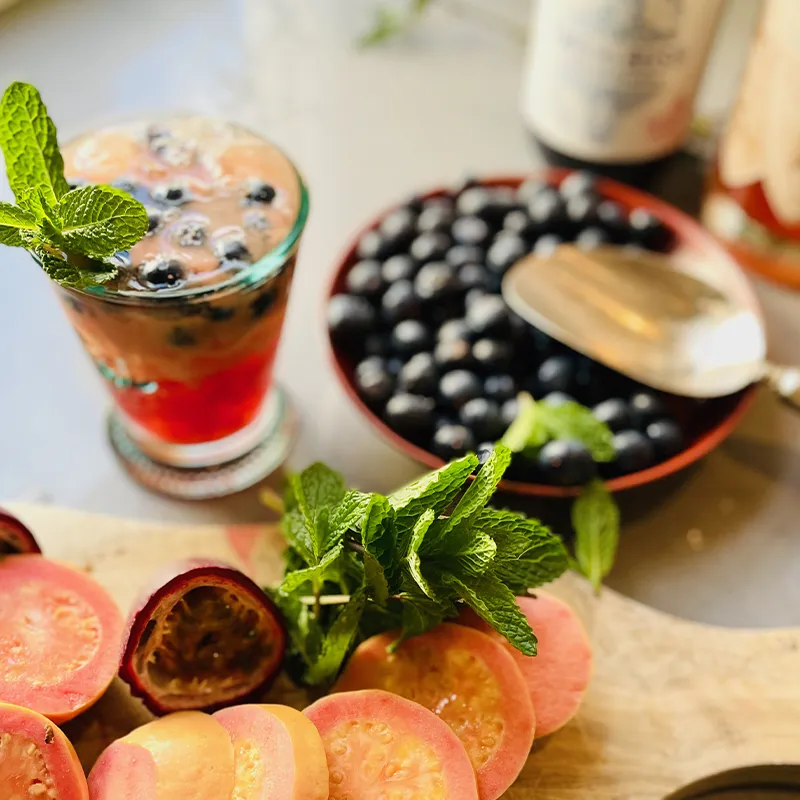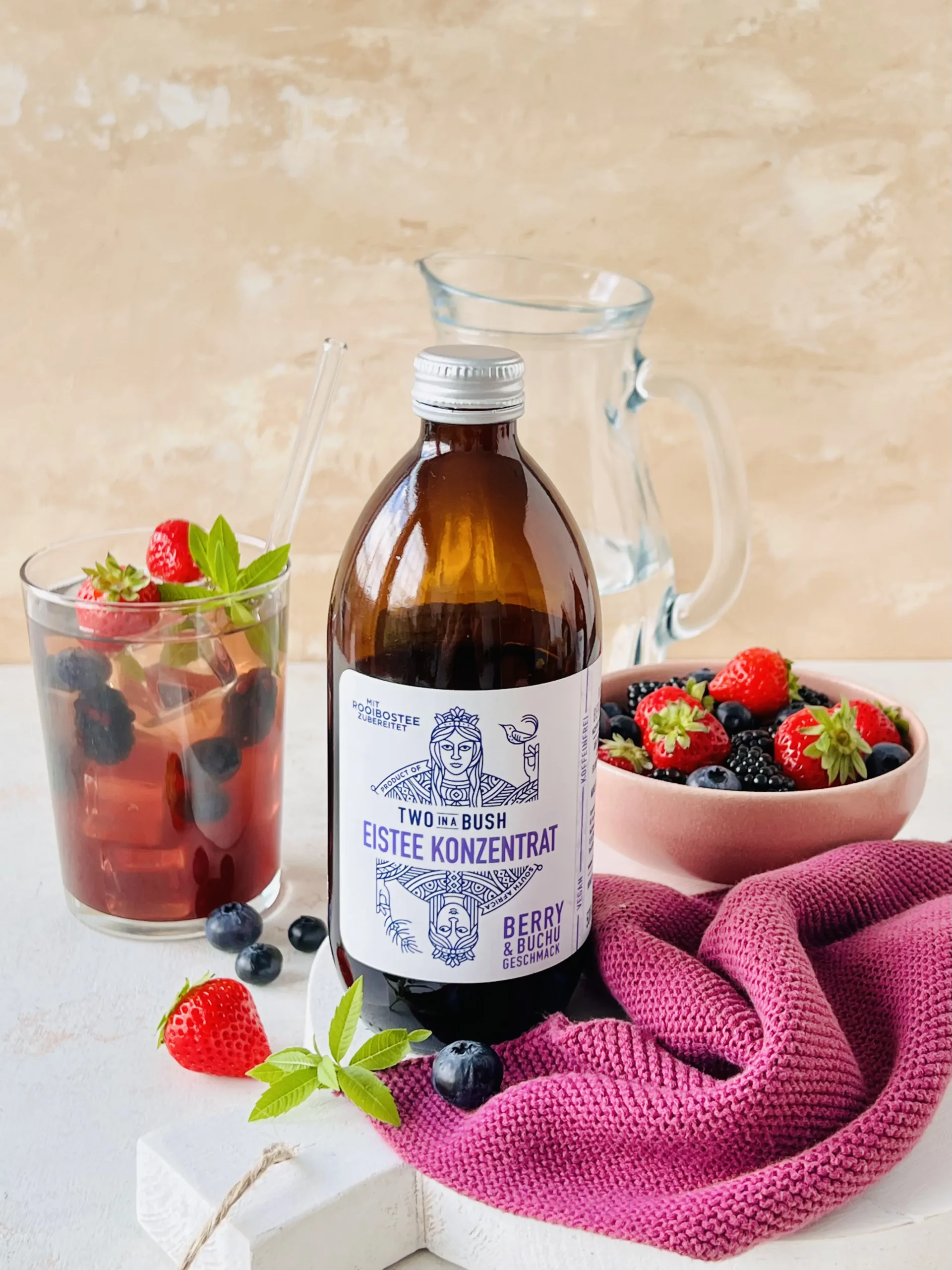 Unser Eistee Konzentrat Berry & Buchu ist die perfekte Wahl für alle, die einen außergewöhnlich frischen und leicht herben Eistee genießen möchten – ganz ohne Koffein und mit wenig Zucker.