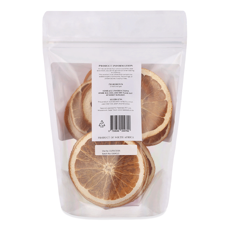 Bei trockener und luftdichter Lagerung sind getrocknete Orangenscheiben mehrere Monate haltbar. Der wiederverschließbare Beutel hält das auch Aroma auch nach dem Öffnen.